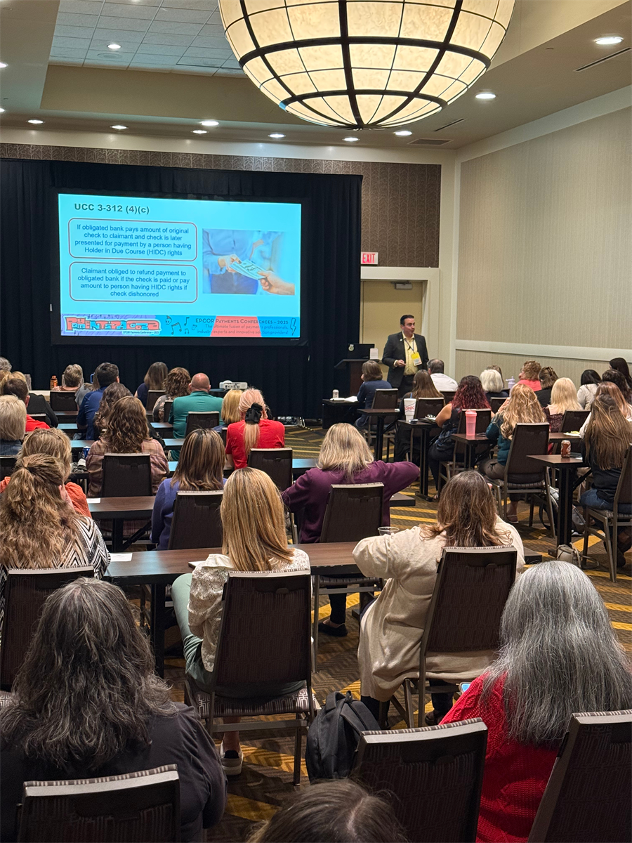 Trevor Witchey, AAP, APRP, NCP (EPCOR) led The Latest in Check Fraud Schemes, Responses and Mitigation Strategies, covering emerging threats and best practices for addressing check fraud in an increasingly digital-first environment. |