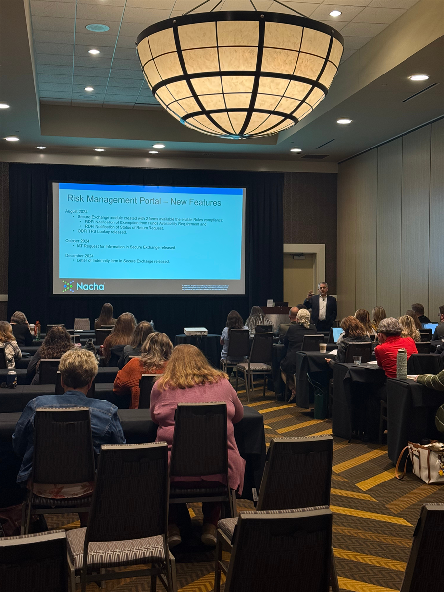 Brandie Thacker, AAP, CAE, President & CEO, and James Carrick, Vice President of Education, welcomed participants and set the stage for a conference filled with knowledge and collaboration. The first general session, Payments Industry Update: A Fireside Chat, featured Lance Wagner (Federal Reserve), Michael Herd (Nacha) and Steve Douglass (The Clearing House). Attendees gained a comprehensive view of payments trends, compliance challenges and fraud mitigation strategies from industry leaders.