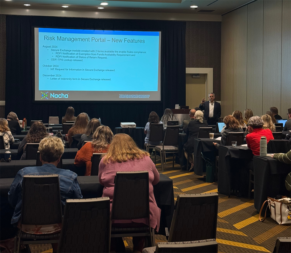 | Michael Herd (Nacha) presented Pay by Bank: Opportunities for Open Banking and ACH Payments, sharing research on adoption trends and associated risks. |