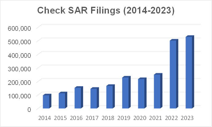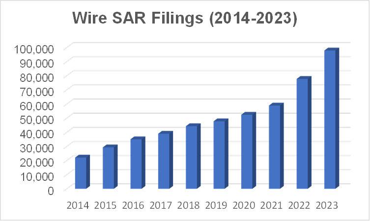 - Credit/Debit Cards – 114% SAR filing growth since 2021.